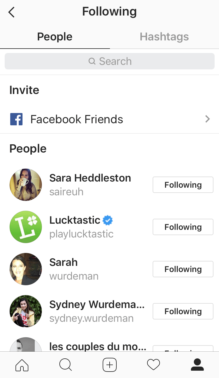 Step Two: After tapping on the “following” (button), search for the person’s account that you want to add post notifications for. Start by typing in the search box located at the top of the “following’ section.