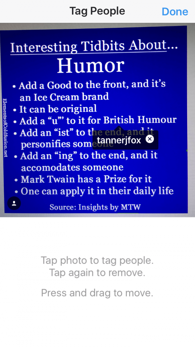 Note: You are only allowed to tag 20 people, per photo, according to Instagram.